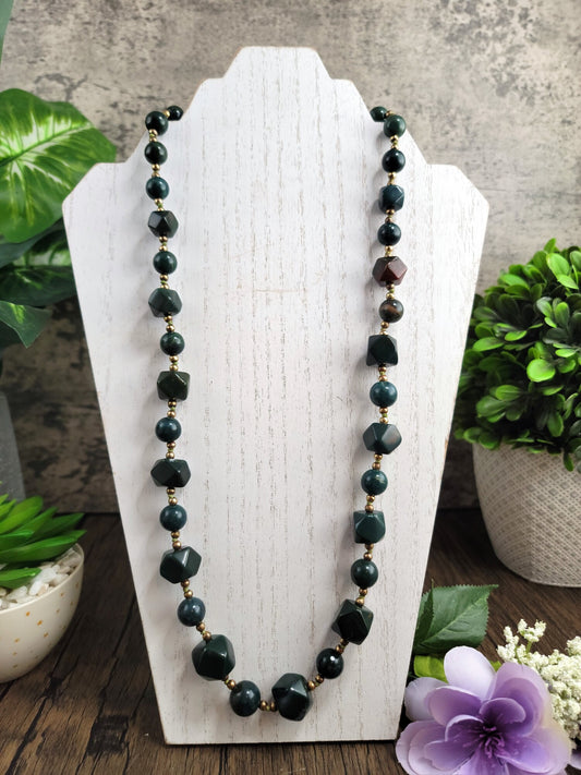 Bloodstone Heliotrope Beaded Vintage Necklace, 32" Mid-Century to 1970s
