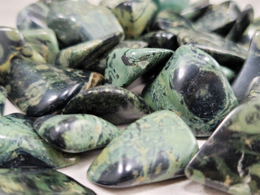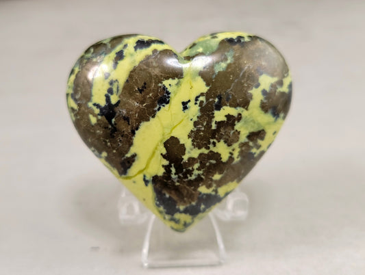 Serpentine with Pyrite Heart Polished Palm Stone 2", From Peru