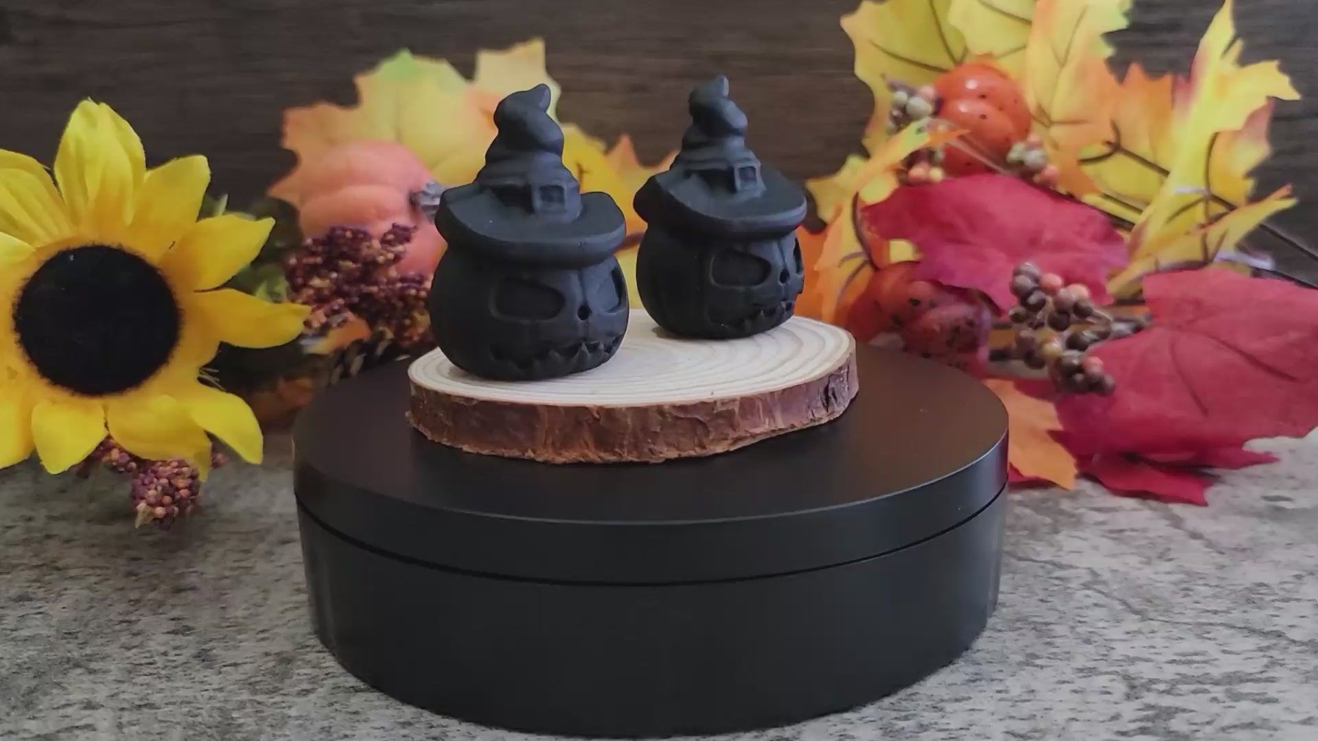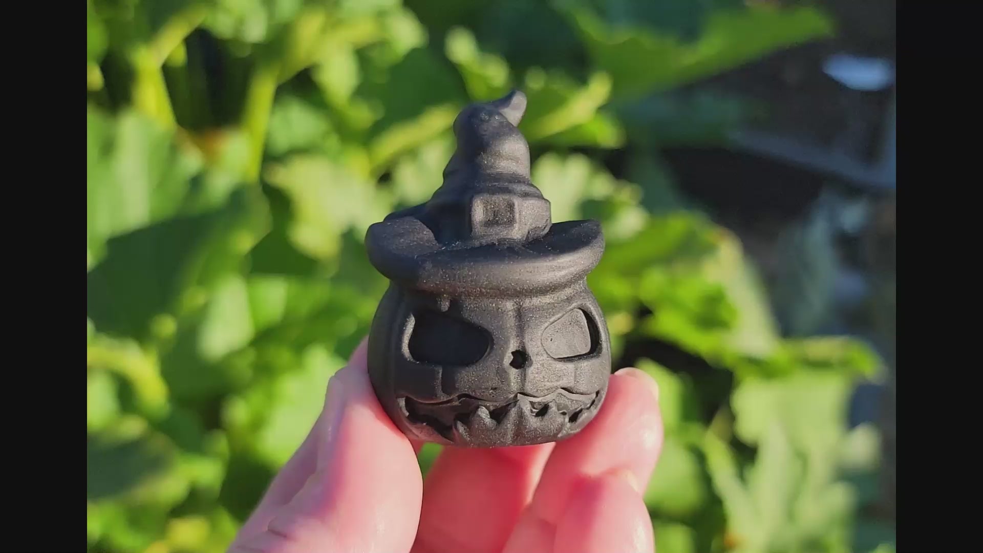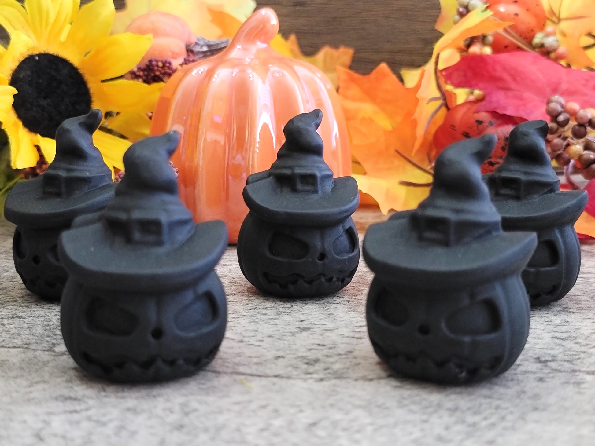 Black Obsidian Pumpkin With Sorcerer, Witch Hat Carving